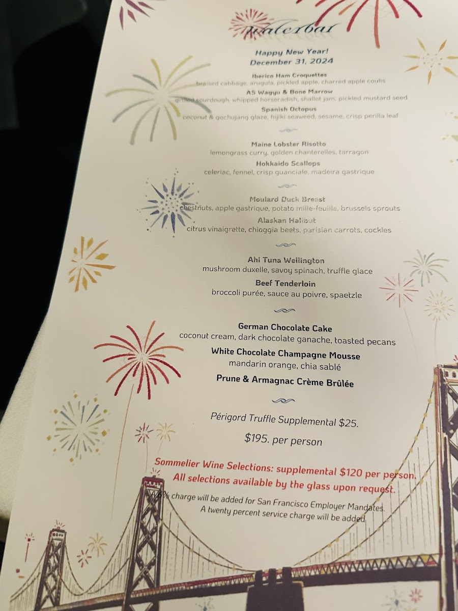 Whether you're stopping by for a weekend brunch, a leisurely lunch with views of the Bay Bridge, or a sophisticated dinner, the menu adapts beautifully to each occasion. Light, refreshing options such as chilled Maine lobster roll or tiger prawn cocktail work well for daytime gatherings, while rich choices like lobster risotto and stuffed Liberty duck breast bring a comforting depth to evening meals.